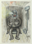 In deze eigen techniek, soms bijgekleurd, creëerde hij schitterende series, startend met “Hommage aan een vriend”, als eerbetoon aan Jan Cox. Een werk uit deze reeks werd door Tom Barman geselecteerd voor de eerder vermelde expositie. En voor de huidige tentoonstelling heeft hij in deze techniek diptieken, tweeluiken dus, gerealiseerd. Immer is het autobiografisch karakter aanwezig. Een zelfportret is steeds al of niet verdoken tegenwoordig.