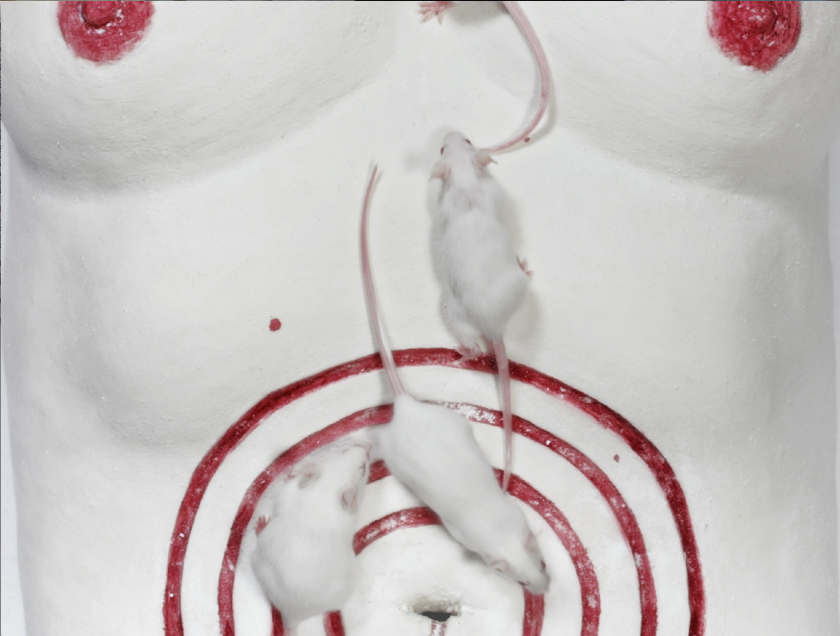 In het ‘winkeltje’ van de galerie zien we een video voor drie schermen: ‘You said Love is Eternity’. Geïnspireerd door zowel de stillevens als door de lichtweergave in de zeventiende-eeuwse Hollandse portretkunst, toont Agnès Guillaume zonder omhaal of uitleg – en in stilte – een moment van liefde, leven en dood. In de bovenste verdiepingen van de galerie zien we ‘My Nights’ en ‘My Fears’, de twee eerste zelfportretten van een serie van vier. De videast legt zich hier een aantal vormelijke beperkingen op. Er is een enkelvoudig scherm. De kunstenares verschijnt zelf in interactie met witte dieren. Het beeld is tweekleurig: wit en nachtblauw, wit en rood. Het zijn verinnerlijkte zelfportretten, uiteraard in de eerste persoonsvorm, niet zozeer een exhibitie maar eerder een uitnodiging aan eenieder om zich te bevragen, zich te ‘her-voelen’. ‘My Fears’ en ‘My Nights’ worden vergezeld met werken in mixed media vanuit still frames uit de video’s. ‘Les Instants’ en ‘Les Moments’ zijn multipels, drukken op papier en rhodoïd opgehoogd met inkt. ‘Mouths’ bestaat uit twee series eenmalige werken op papier, polyptieken op zeer kleine oplage alsook grotere stukken met pastel bewerkt.